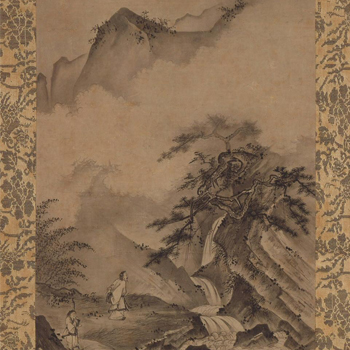 Li Bai (701–762) was a famous Chinese poet of the Tang dynasty (618–906), whose reputation spread even to Japan. There, his poem “Viewing the Waterfall at Mount Lu,” became a popular painting theme.